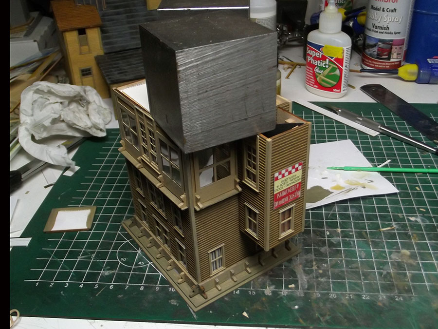 Signs added, and yes these are signs from the Majestic kit , I will be putting the 2 buildings on a dio such that this is the store of the business and the Bar Mills kit will be the work place and storage place, more on that later on in the show.