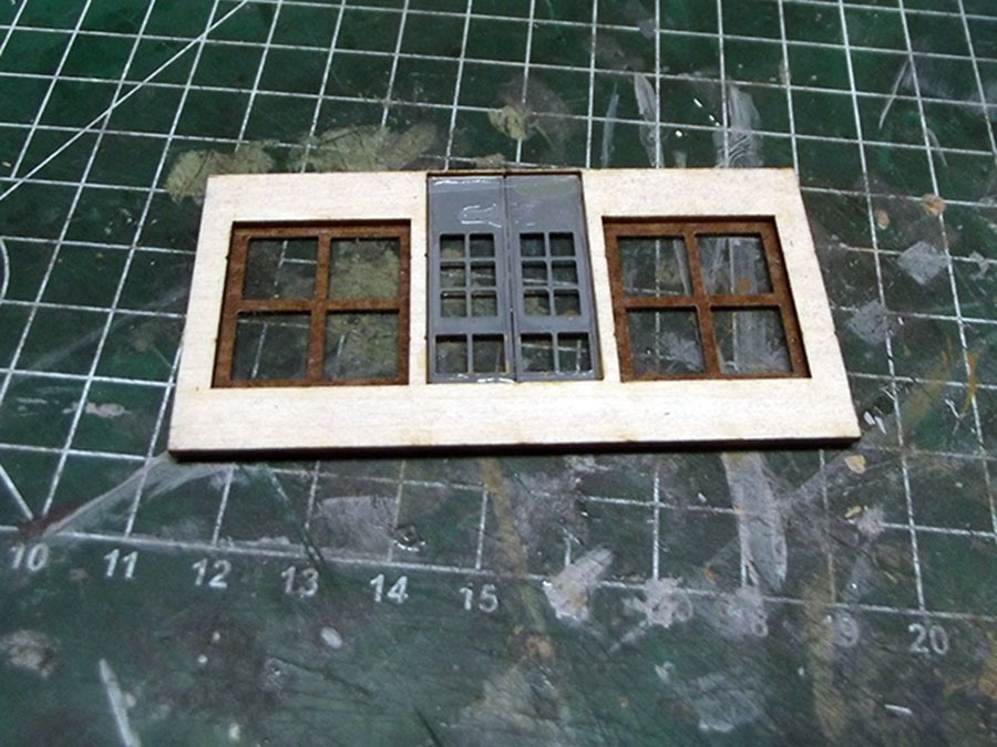 Fit the front doors to this frame by cutting off a piece in the length and sanding so it fitted nice and firm together.