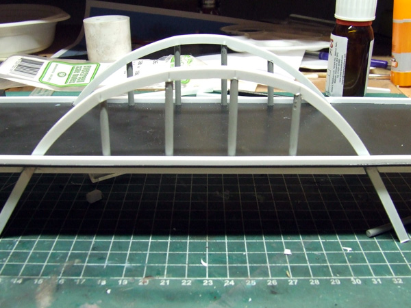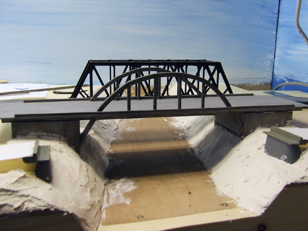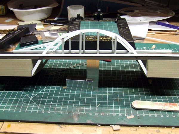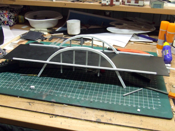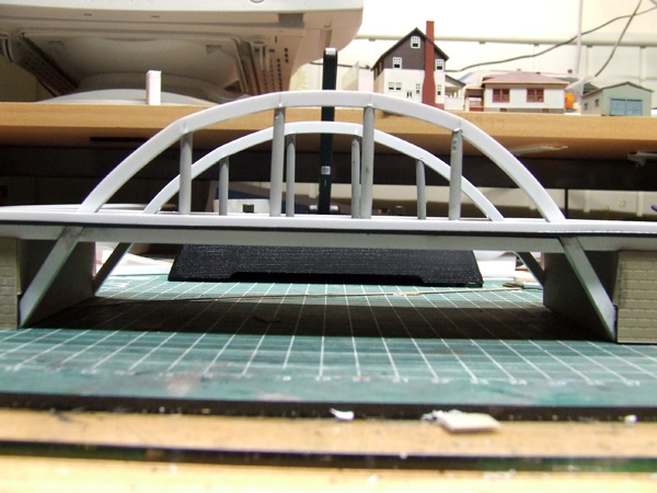 This is a double track concrete bridge I scratchbuilt, starting off with a sheet of styreen.