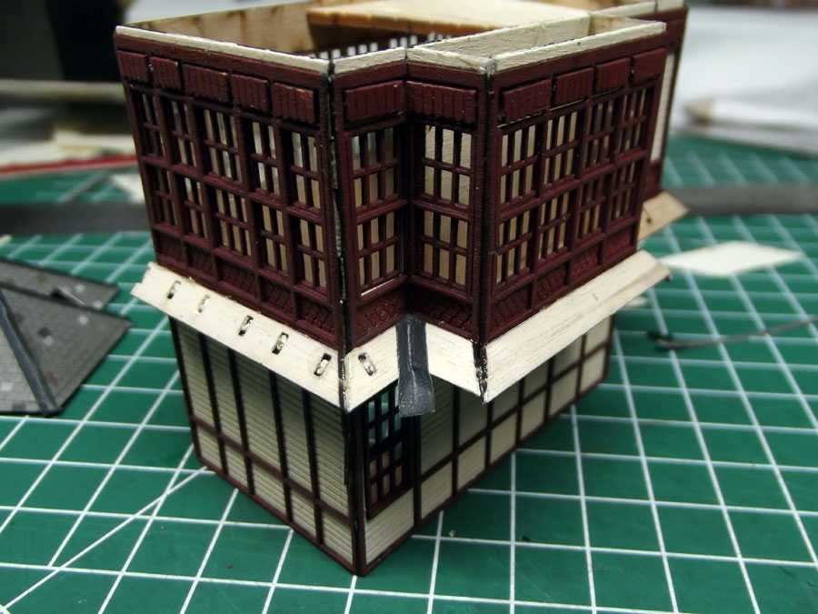Started shingling the roof with the printed shingle parts, not sure I will keep this , I think better shingles or tar paper roofing would look better.