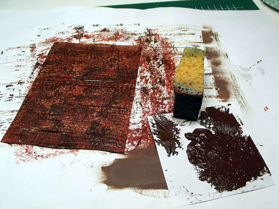 Painting the shingles with a sponge and first Sienna and then Dark Brown.